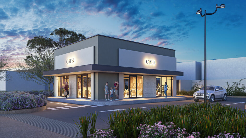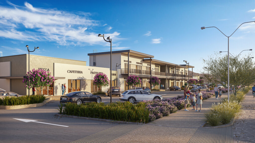 Plaza comercial dentro del Plan Maestro Boreal, diseñada para marcas en crecimiento.